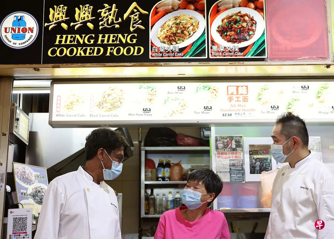 13年前无师自通,研发秘方售卖手工面的何文珠(61岁),五年前搬入庙弯巴刹与熟食中心。她之前在惹兰红山一带的咖啡店开业,也卖过其他食物如叻沙和虾面。