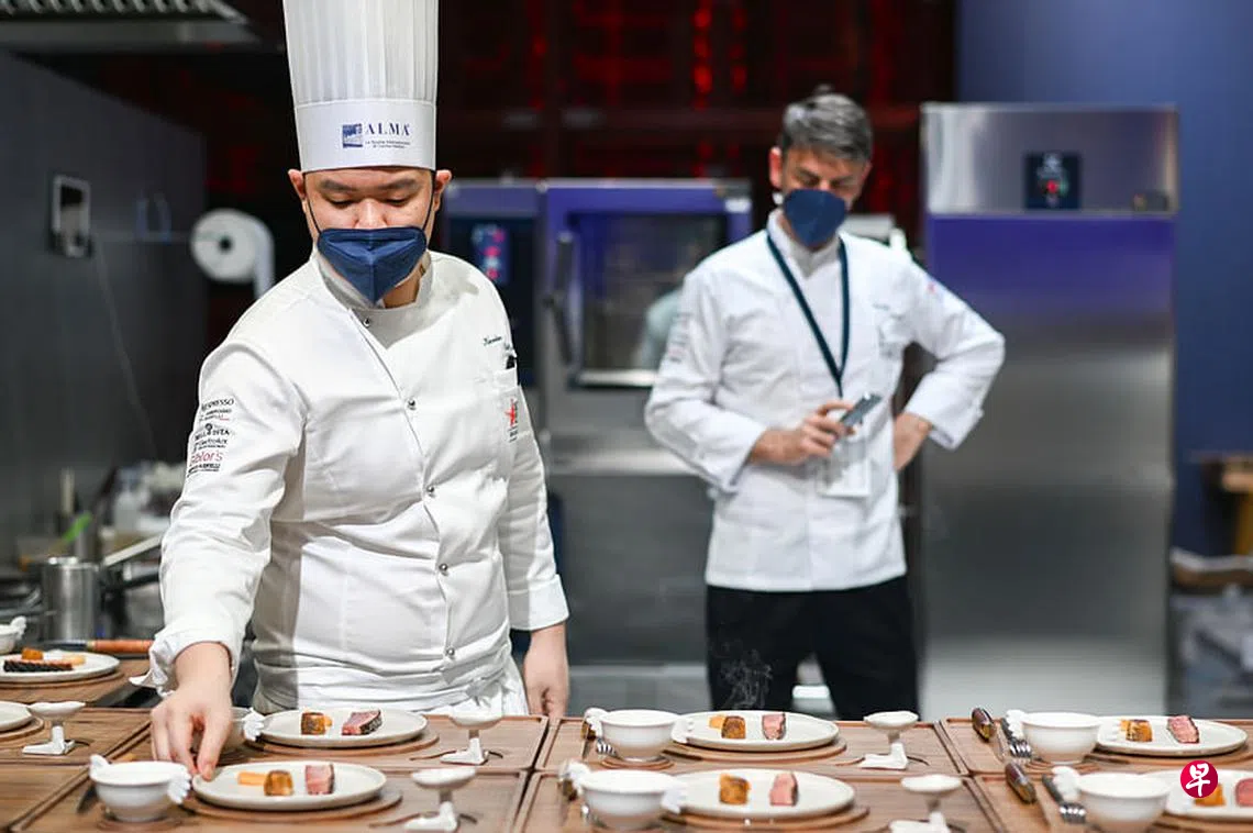 国际烹饪比赛活动逐渐恢复,因疫情而延期的圣沛黎洛(S.Pellegrino)青年厨师比赛,上个月30日于意大利米兰举行,亚洲区代表新加坡餐馆Meta厨师黄达文(27岁,Kevin Wong),以一道自创鸭肉菜品获得季军。