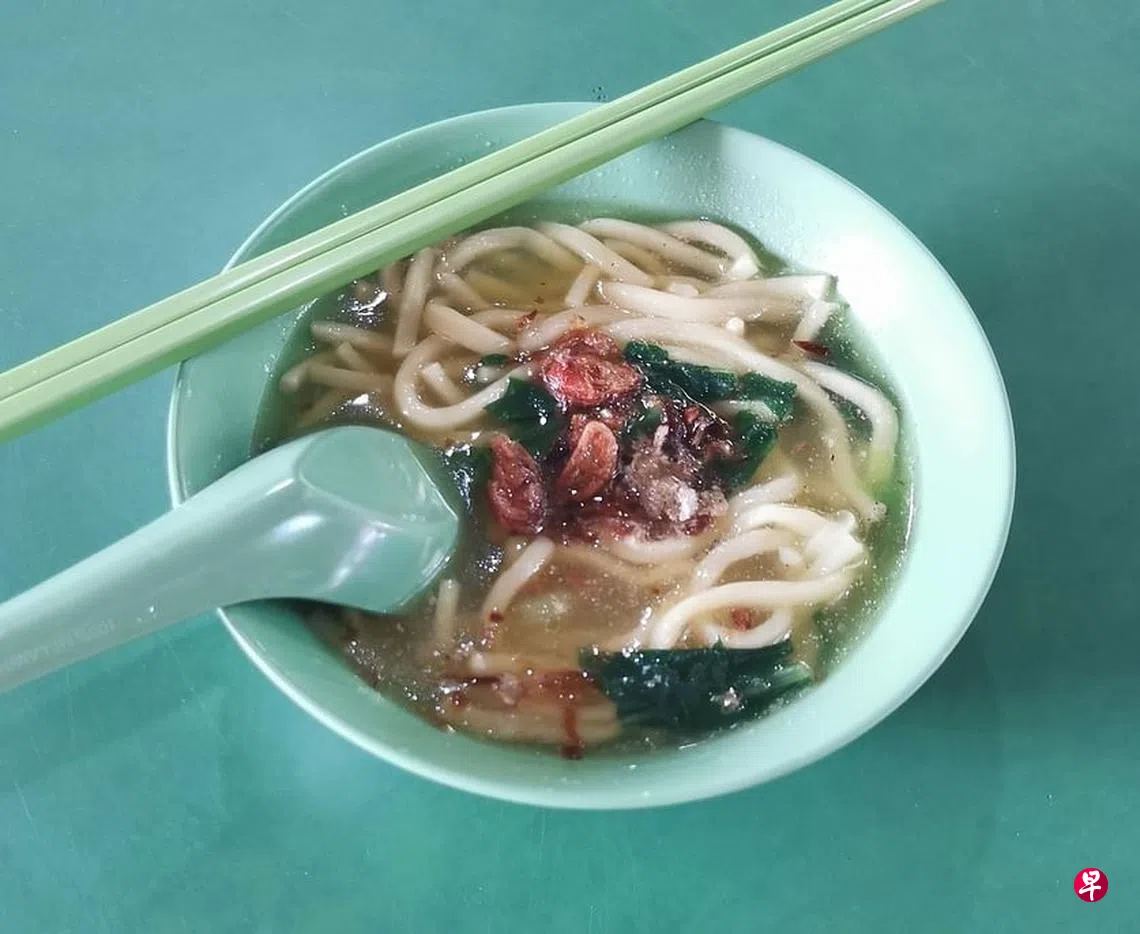 另一家在中峇鲁庙弯熟食中心的“桃源熟食”,拉车面也卖了近40年。汤底以江鱼仔加白菜、小白菜或菜心煮成。同样加上炸葱,味道比较浓厚,清甜之余带胡椒味。分量较大,一碗$2或$2.50。