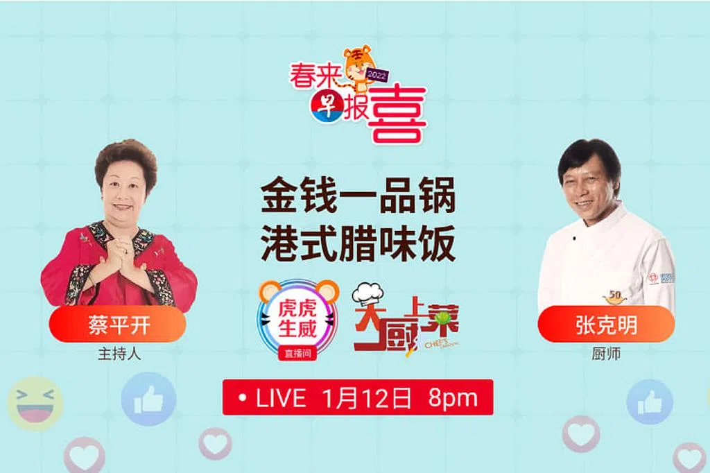 虎年将至,《大厨上菜》邀请知名本地资深艺人“二姑”蔡平开以及厨师张克明,于1月5日(星期三)晚上8时,以直播形式与大家分享年菜巧思。