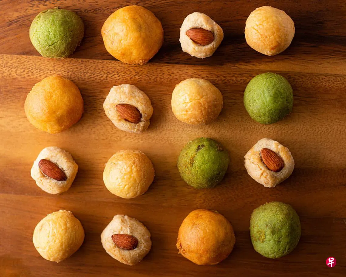 如果想吃本土风味年饼,本地品牌Ollella有特别的辣虾米球和椰丝糯米糍球,一咸一甜,搭配着吃特别合味。