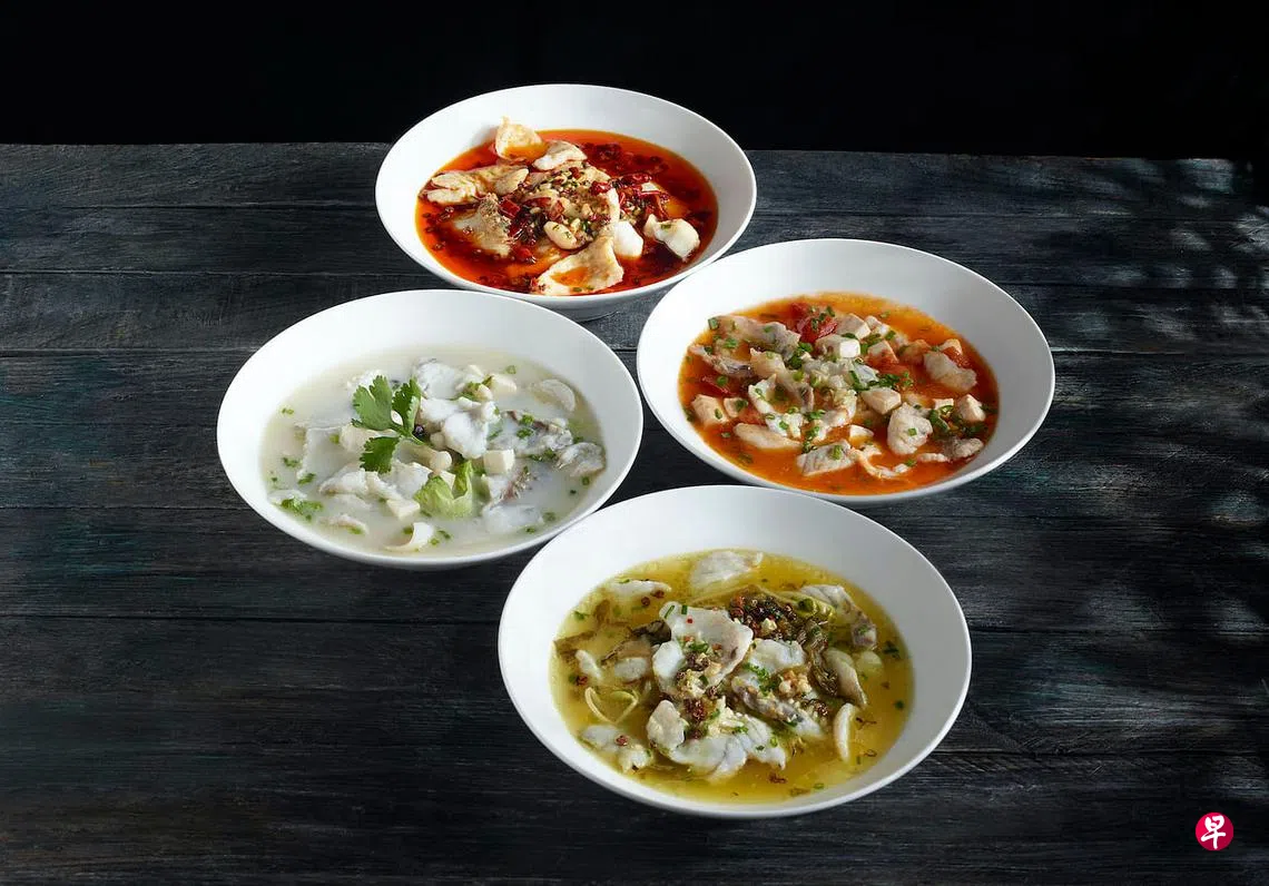 店里的招牌鱼汤有四种口味:胶原白汤、公举番茄鱼、酸菜鱼和水煮鱼(各$9.80)。