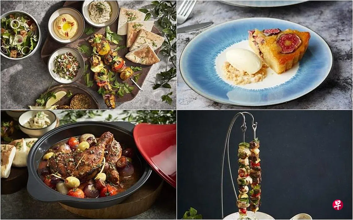 前菜拼盘Mezze Plate($34,两人份)是一道很好的入门,浅尝地中海料理特色。三碟凉菜是Tabbouleh(一种由红白藜麦、香菜和番茄等时蔬组成的黎巴嫩沙拉)、Moutabal(茄子泥)和Hummus(鹰嘴豆泥),配搭鹰嘴豆饼、叶类沙拉、烤饼和烤鸡肉串。鸡腿以优格和香料腌隔夜,与洋葱、灯笼椒和西葫芦间隔串起,烤五分钟后取出,再烤五分钟,最后淋上混合蒜头、柠檬汁、九层塔和特级初榨橄榄油的调酱。