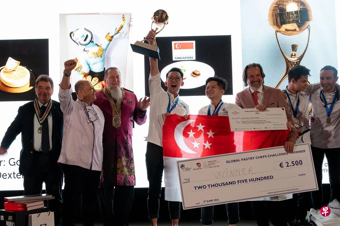 这个两年一度的比赛由全球厨师协会联盟Worldchefs举办,上个月31日至本月3日于阿布扎比举行。比赛项目分全球厨师挑战、全球糕点厨师挑战,以及全球年轻厨师挑战,共吸引40支不同国家地区队伍参加。上一届2018年比赛中,新加坡代表也摘下糕点厨师冠军,比赛两年前因疫情而停办。