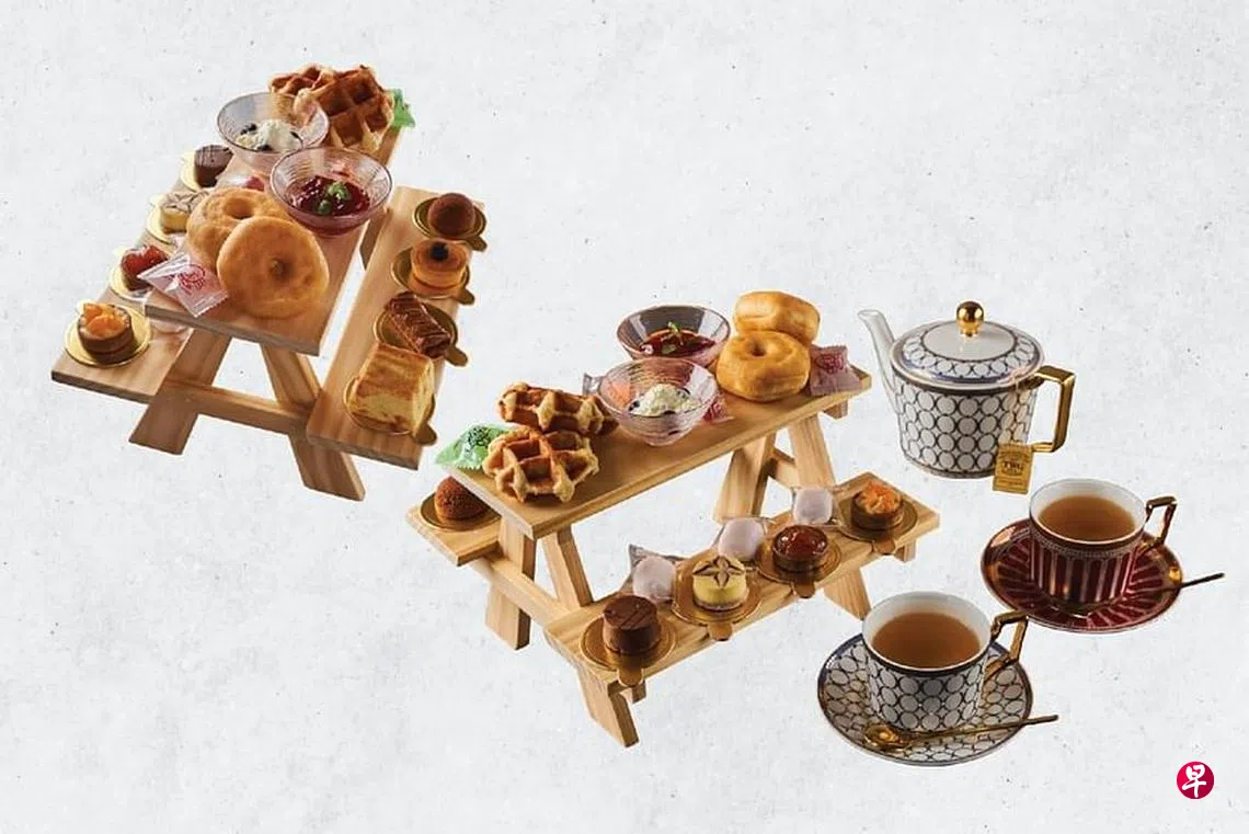 下午茶派对套餐适合两人分享,每天下午2时30分至晚上6时。咸味小点有蟹肉挞、牛角面包和迷你汉堡;甜味则有芝士蛋糕、水果挞,还有英式松饼配草莓酱和奶油。下午茶食品会随季节变动。饮料可选TWG Tea的茶或日本茶。