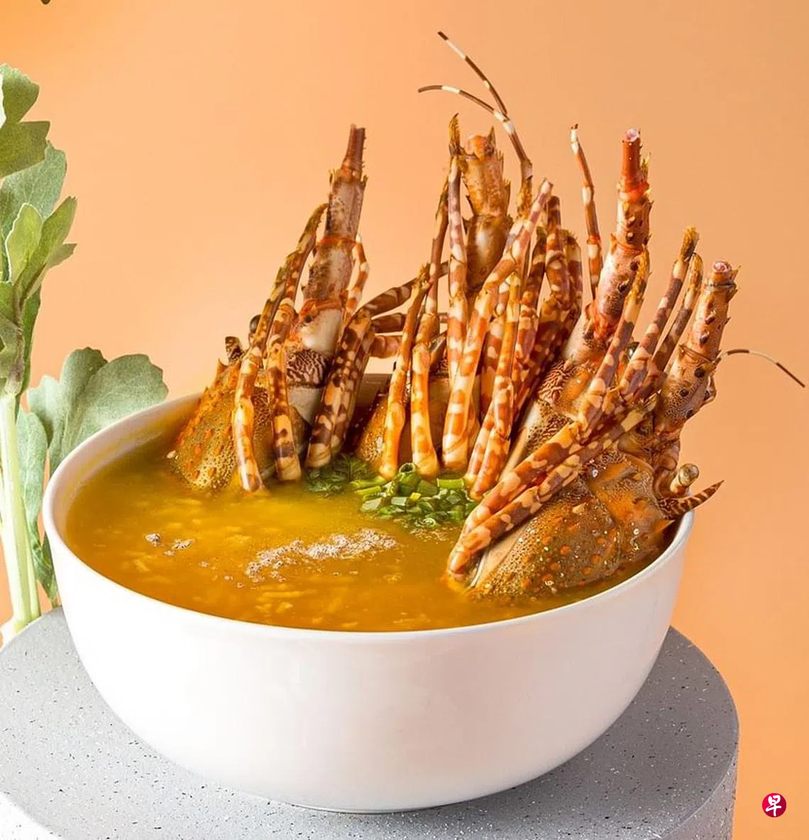 说起万合楼,一道“招牌龙虾粥”可说是餐馆的“镇店之宝”。龙虾粥由潮州风味的高汤熬制而成,蔬菜结合老母鸡汤小煮慢炖,鲜甜清香。米粒在沸腾的金色汤汁中煮熟,鲜味浓郁,在白米快开花时加入新鲜龙虾,肉质煮得恰到好处,紧实多汁。