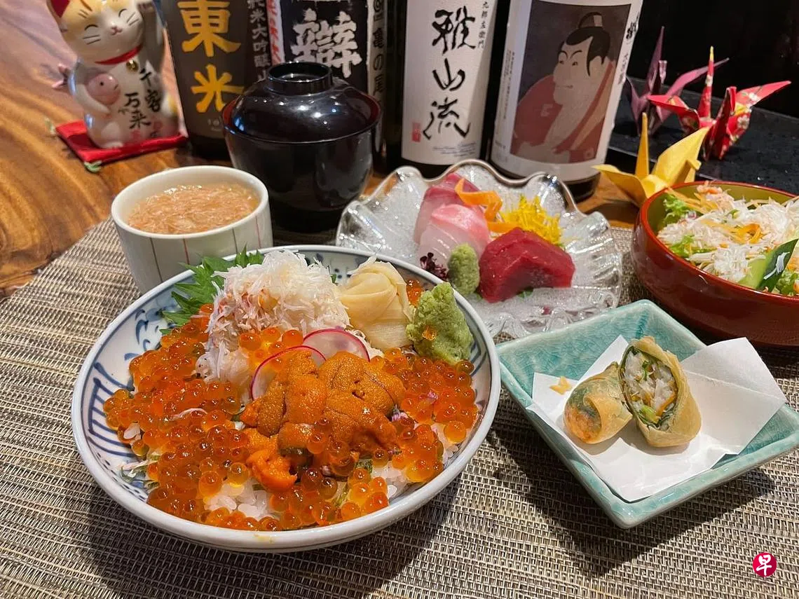 北海道大闸蟹来自太平洋,蟹壳上都是刺,体积比一般螃蟹来得小,肉质却是鲜甜结实。餐馆推出的北海道大闸蟹午间套餐($88)以四种方式呈现,包括:大闸蟹蒸豆皮、大闸蟹沙拉、大闸蟹春卷,以及卖相澎湃的大闸蟹海鲜盖饭,其上铺满鱼卵和鲜美海胆,还奉上刺身与味噌汤。