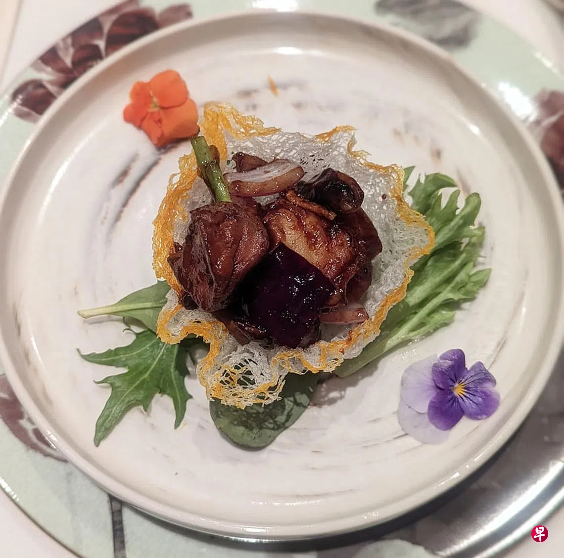 鹅肝串烧酱爆鳕鱼球也富新意。鹅肝醇香丰腴浓厚,细腻滑润入口即化,让人一尝难忘,难怪欧洲人将鹅肝与鱼子酱、松露并列为“世界三大珍馐”。厨师搭配鳕鱼与鹅肝,两种食材的香气和风味结合,形成口味独特的层次叠加,加上特制酱料,甜咸组合完美平衡了鹅肝的油腻又增香。
