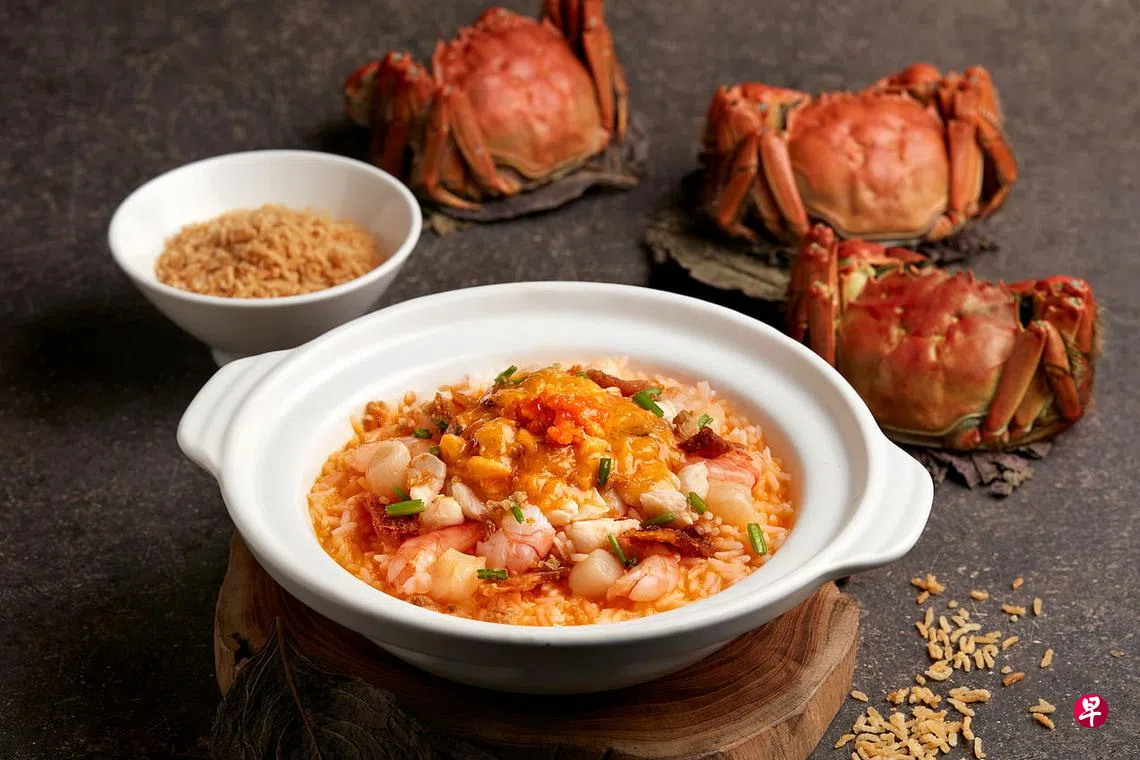 师傅发掘了大闸蟹的无限可能,如石锅大闸蟹粉鲍翅($78.80,只限味之楼)、松露西施大闸蟹粉玉带($58,只限味之楼)、大闸蟹粉砂锅脆米烩饭($46,只限潮乐轩)和大闸蟹粉焖手拉面($48)。建议预订。