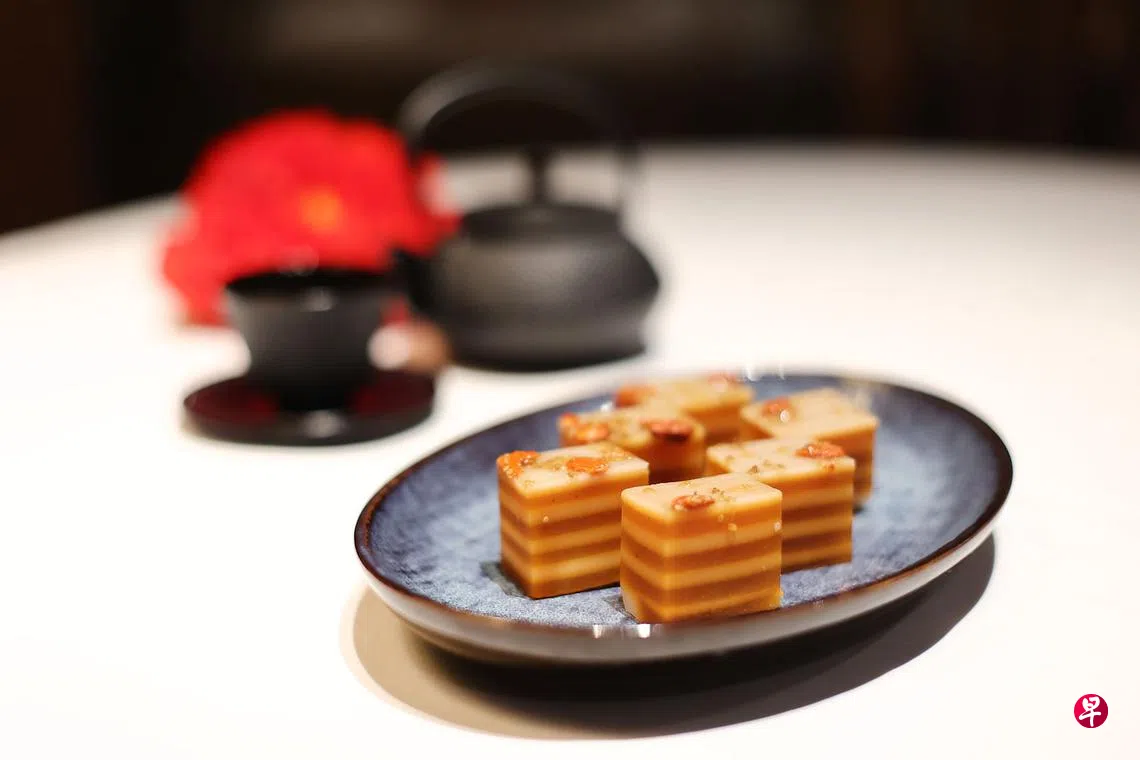 新加坡万豪董厦酒店的中餐馆万豪轩行政副总厨黄㫬嵃制作的桂花杞子枣皇糕,经过改良后,软糯更美味,少糖更健康。他会在农历新年期间,为父母做这道传统糕点。