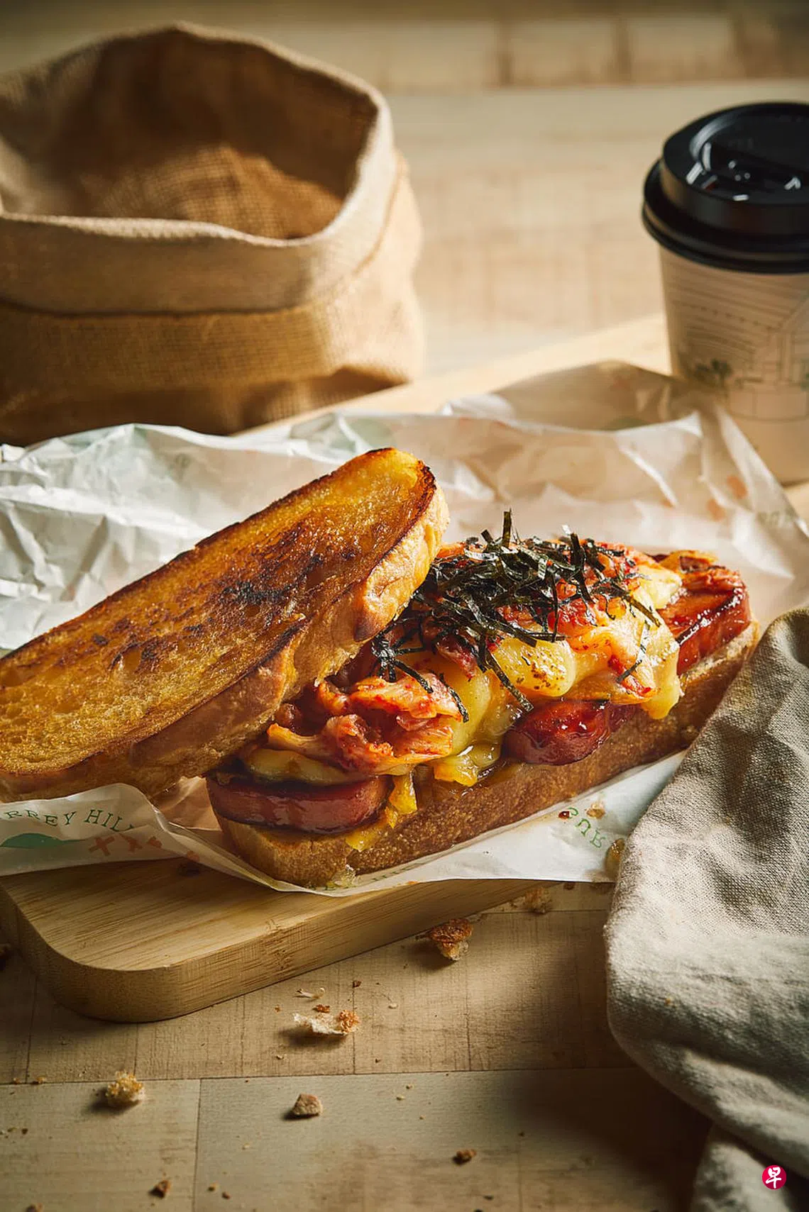 试吃了三款,推荐韩风口味的Spam the Positivity($19),酸种面包配韩式辣酱午餐肉、煎蛋、乳酪、泡菜和紫菜,酸甜辣的层层滋味相当讨喜。想宠宠味蕾可吃黑松露酱汁配火腿($22)或手撕猪肉($20)三文治。