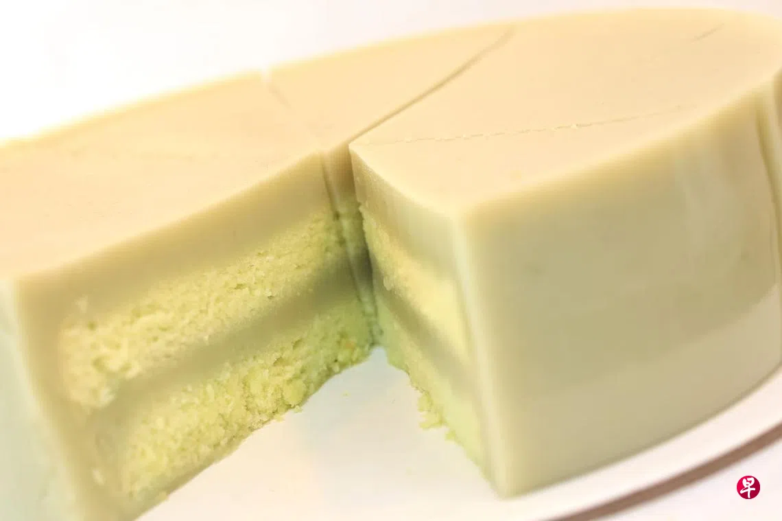 所以说,店内的招牌咖椰蛋糕,是古早味,也是新产品。咖椰浆每天制作,用新鲜班兰椰榨汁,不时搅拌一两个小时。在圆模内放了一层蛋糕,淋上咖椰浆后待冷却,再放一层蛋糕,然后再淋一层咖椰浆,冷却后才能脱模。