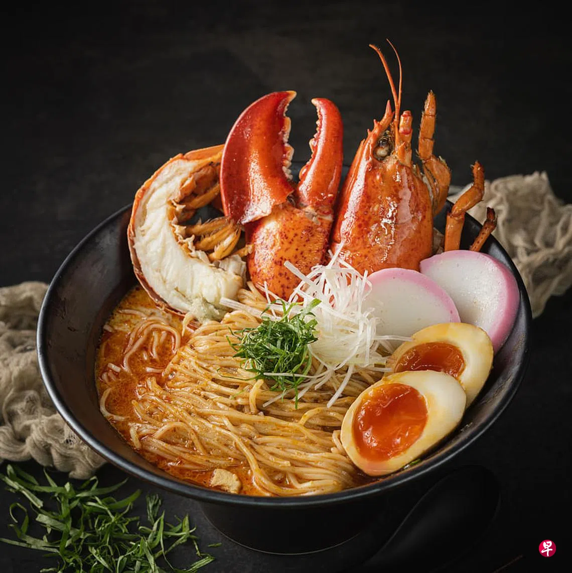 首推澎湃的龙虾叻沙拉面,香浓叻沙汤底搭配日本拉面,面条筋道爽滑,吸附了满满的叻沙汤汁,熟悉的味道有了新鲜感。咸辣恰好的浓郁叻沙汤底,单喝也非常顺口。拉面配料除了“主角”波士顿龙虾,还有日本鱼饼和冲绳岛鸡蛋,呈现叻沙的奢华口味。