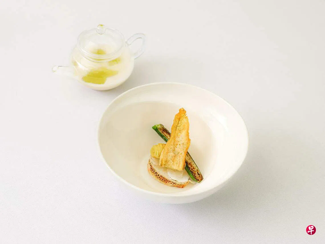 餐馆从2016年起,连续六次摘下米其林一星,进门就可看到适合打卡的荣誉墙。室内翻新后简约大方,可容纳70个座位,有四个独立的八人包厢。午间三道式套餐每人$69++,晚间五道式套餐则是$228++。此外,菜单也增添单点选项,主食从$35++起。