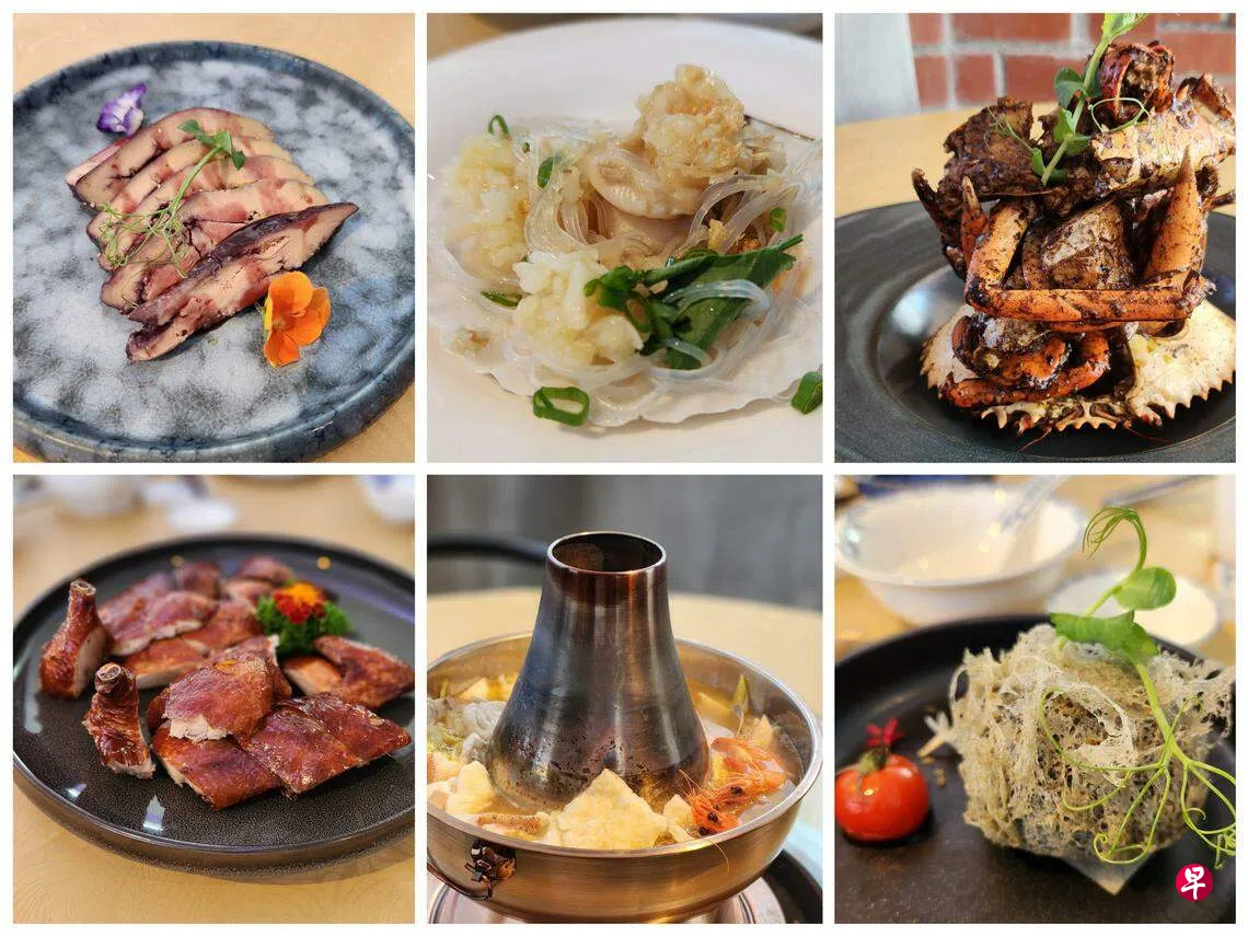 除了海鲜炉,也可尝到曹勇师傅的得奖作品猫山王辣椒螃蟹球($8)及主厨林有财的古早菜金牌烧鸡($26/$48)。此外,当归黑胡椒螃蟹(每100克$10.80)和红酒鹅肝($28)也有惊喜。
