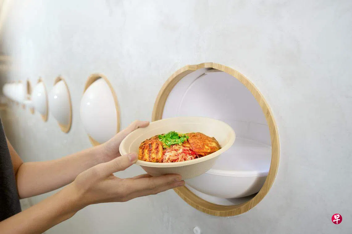 餐馆占地110平方米,设有52个座位,室内设计风格现代简约,原木色调让整个用餐空间呈现出质朴与宁静的氛围。餐馆采用科技点餐技术,食客可预先下载Bamboo Bowls手机应用软件,通过手机点餐,下单的五分钟内,手机就会自动接收厨房发来的通知,并指示食客到自动旋转的指定圆舱(pod)取餐享用。
