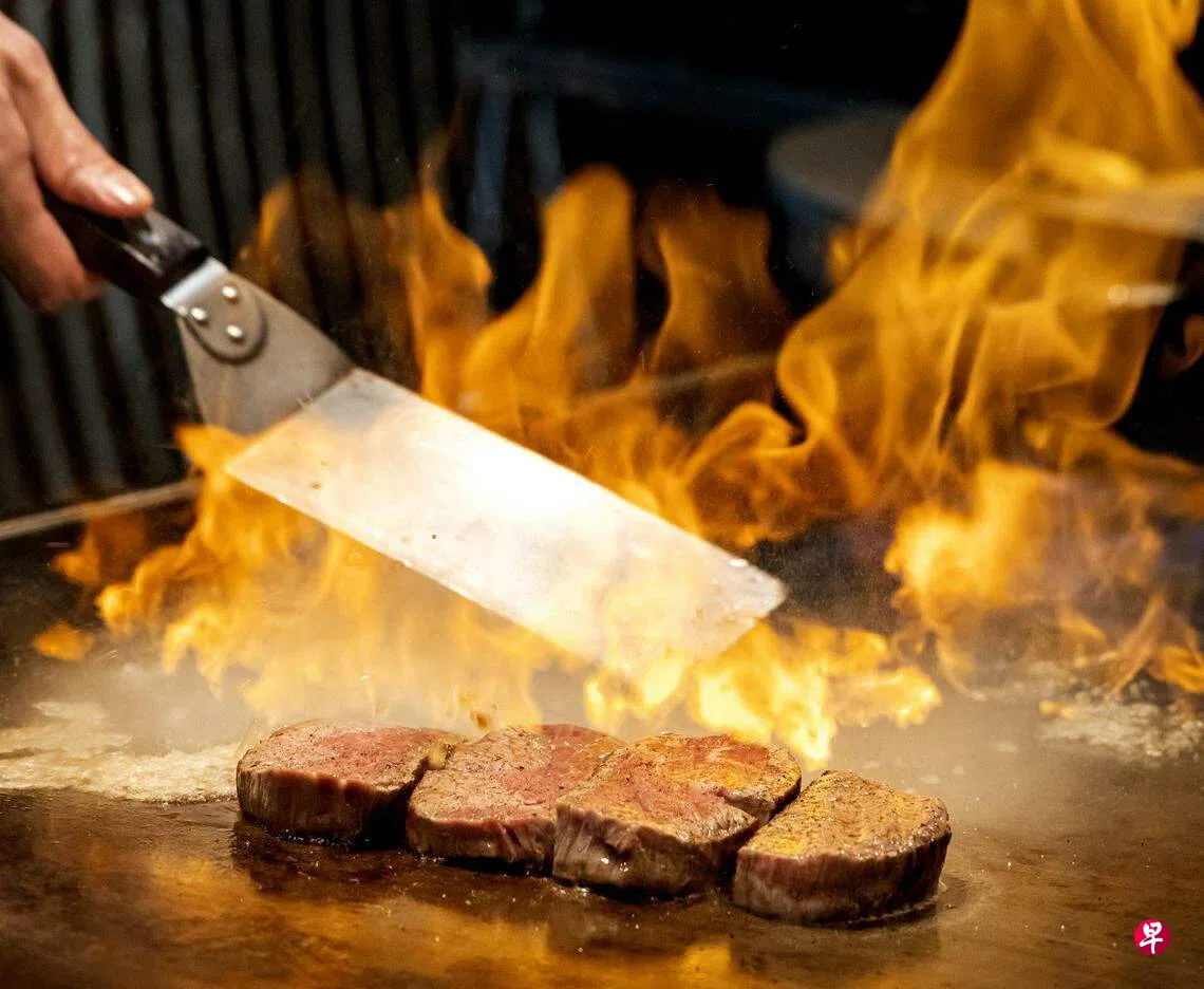 试吃了11道菜的铁板烧及怀石料理晚餐套餐(每人$280++ ),展现厨师的烹饪技术及对温度和时间的掌控。铁板烧的魅力之一是可在餐台前看厨师备食做菜,欣赏火焰与美食共舞的画面,食欲大开。