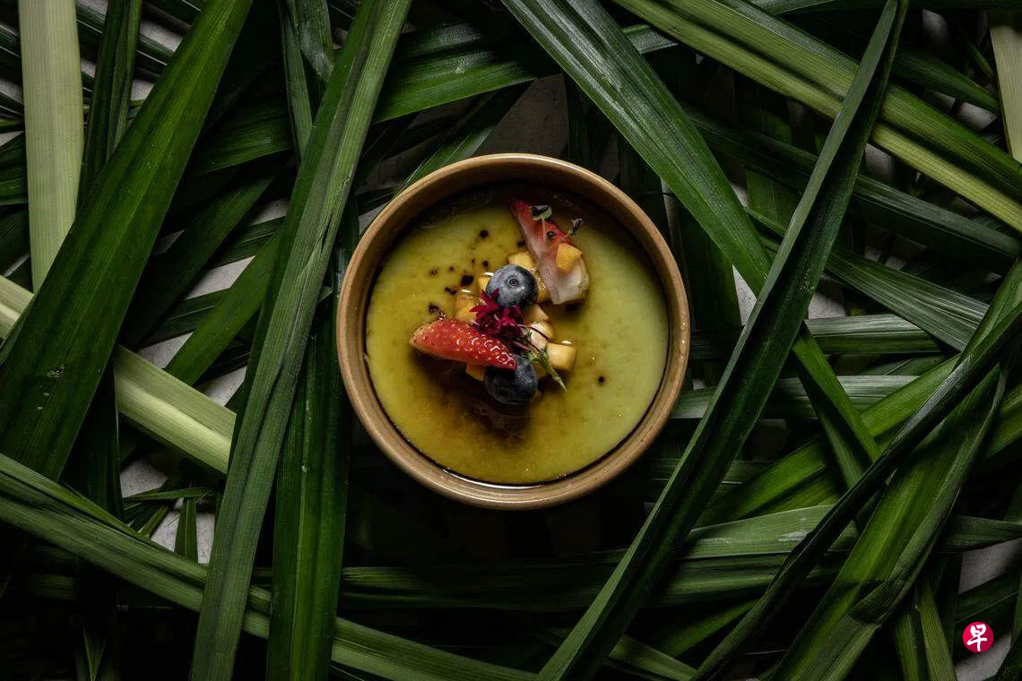 班兰叶是东南亚一带常用的香料,具有独特清香,适用于咸甜料理,从煮饭做菜,到制作各式糕点,都可派上用场。本地餐馆Salt & Palm的创办人之一兼主厨娜塔西亚(Natasya Soetantyo,31岁)就用它做成餐馆的招牌甜点——班兰焦糖布丁(Pandan Creme Brulee)。