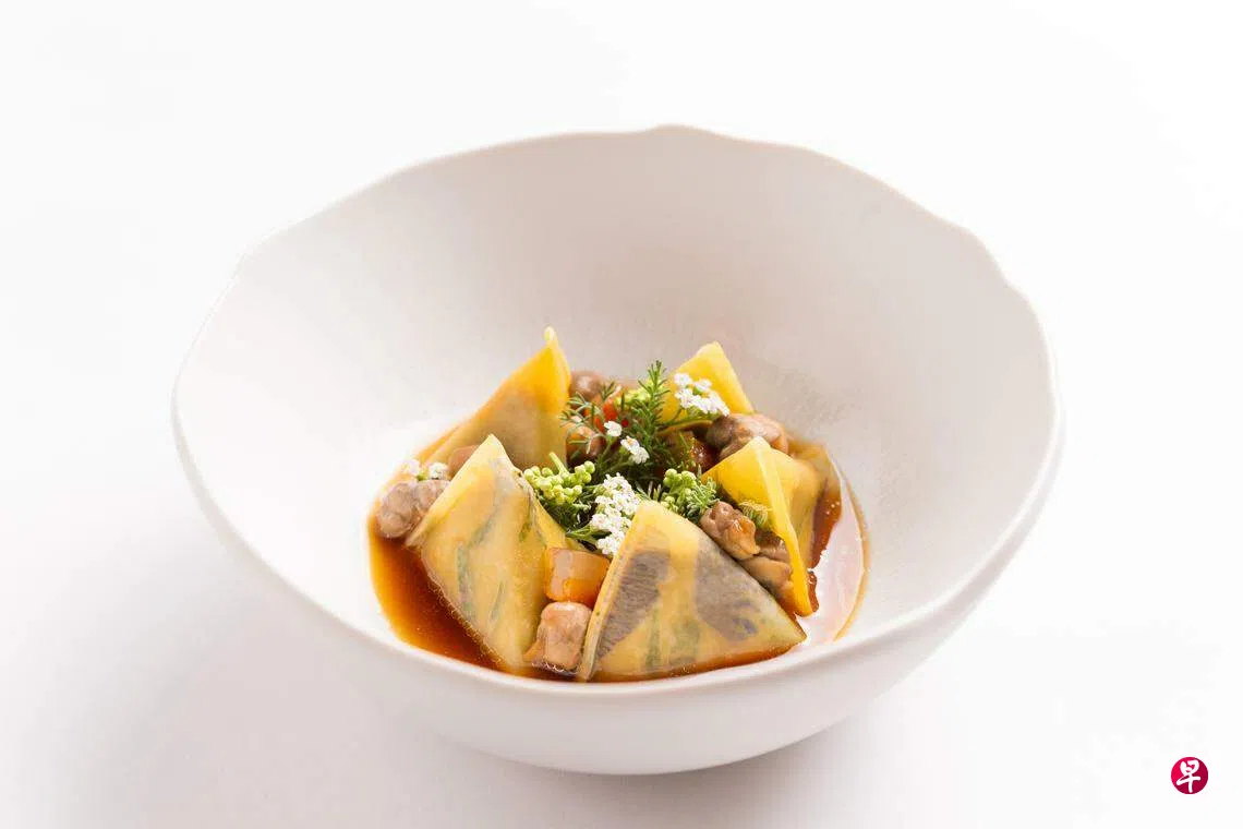 新厨端新菜,莱佛士酒店米其林一星法国餐馆La Dame de Pic近期迎来新主厨佩雷拉(Alexandre Alves Pereira),喜欢不断探索新食材的他,尝试为法国菜增添热带风情。