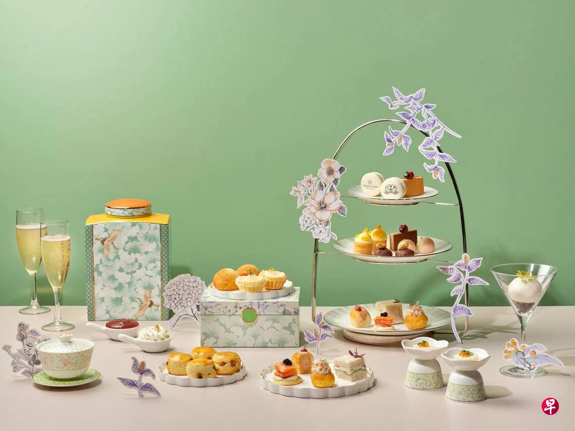 喜来登酒店(Sheraton Towers Singapore)与时尚品牌上海滩(Shanghai Tang)推出联名东方主题下午茶“Oriental Soiree”,灵感来自上海滩家居系列之一“仙鹤游园”系列,让时尚家居与美食跨界交融。