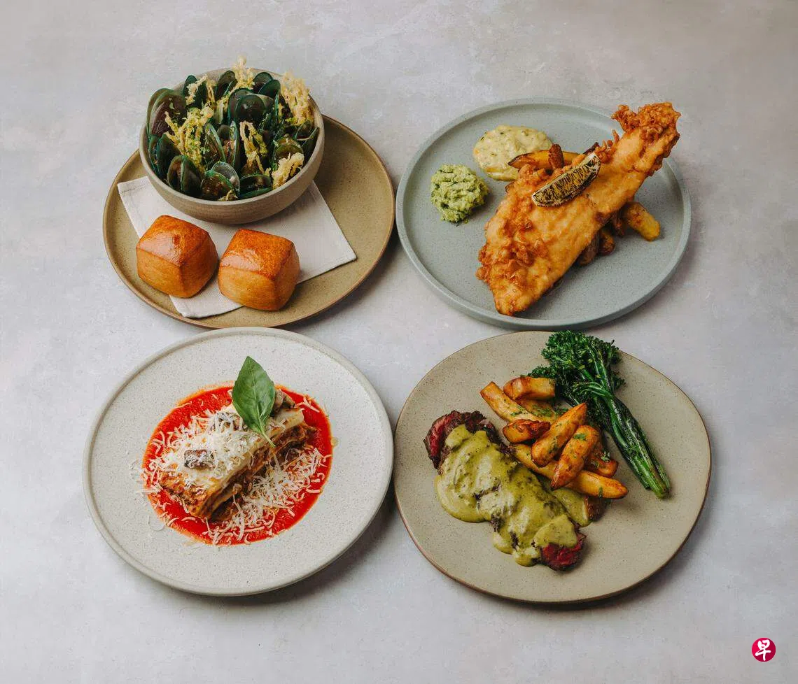 炸鱼薯条也有新意,它用黑线鳕鱼配以柚子塔塔酱和毛豆泥,增添一层清爽口感。