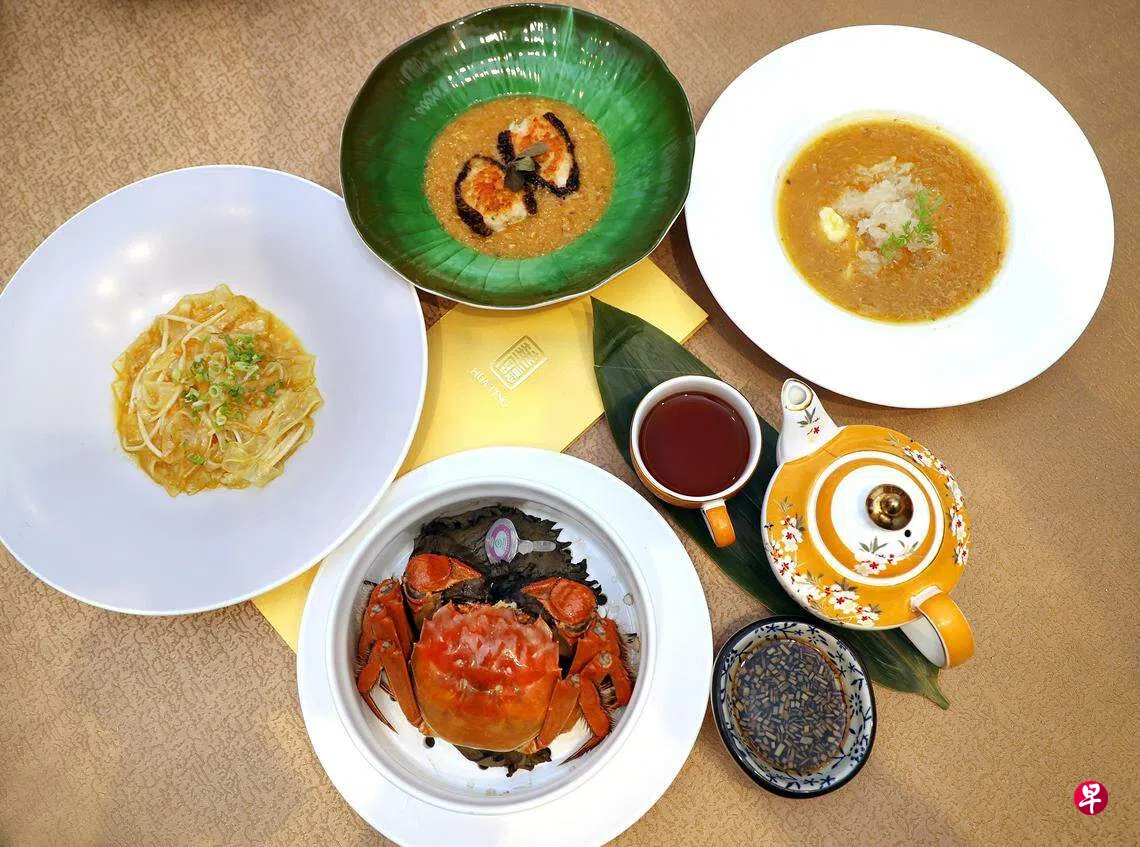 乌节大酒店中餐馆华厅有大闸蟹单点或套餐料理至12月17日,除了传统清蒸大闸蟹,有不少以大闸蟹搭配名贵食材的创意料理。