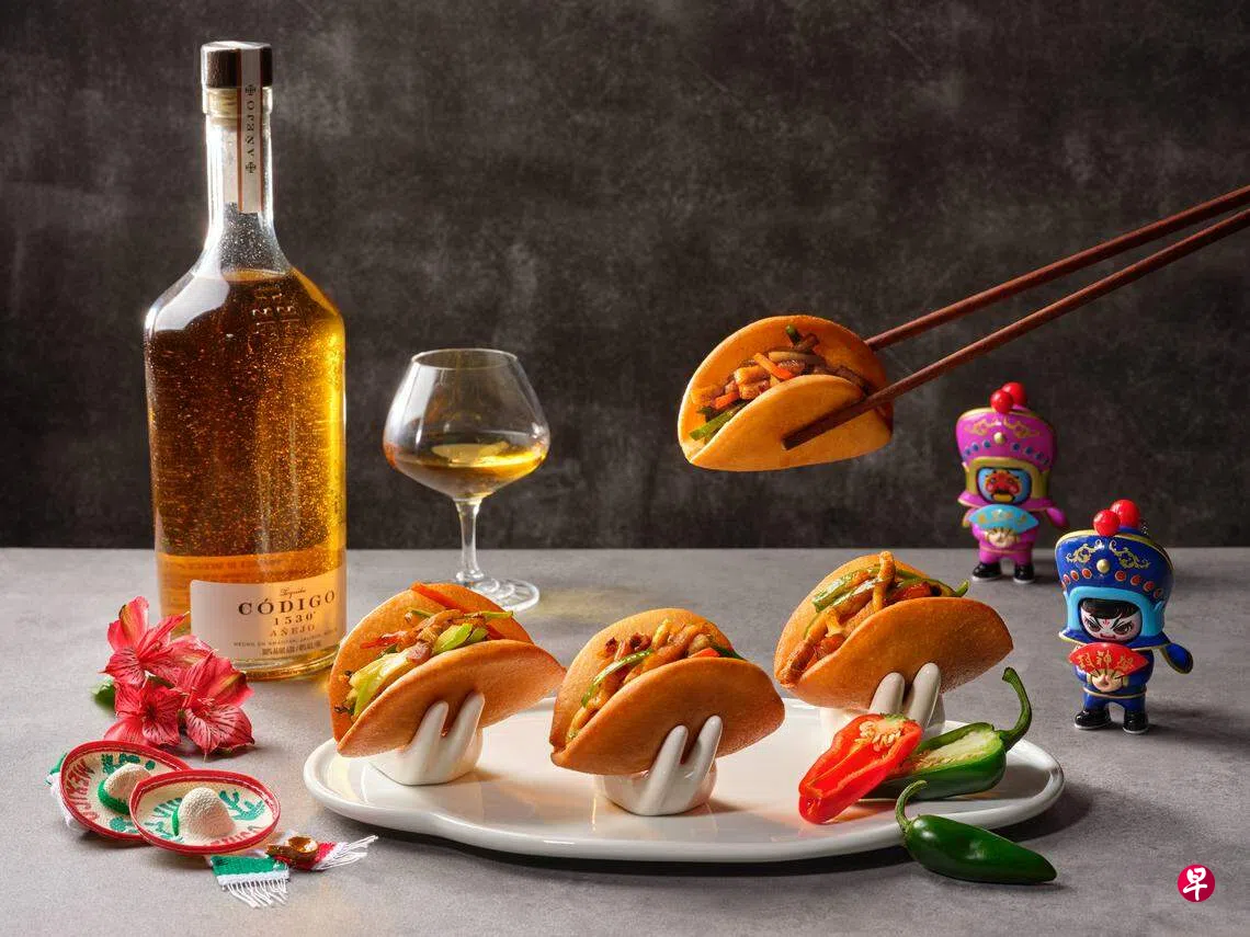 第二个是何志强运用川菜和墨西哥菜的共同元素,创作墨川合一的料理(每人$158++或$188++)。前菜“墨川三拼”是藤椒鲍鱼、开胃牛油果带子、凤梨莎莎酱脆馒头。“夹饼回锅肉丝”是以馒头取代墨西哥塔可饼(Tacos),比较松软,夹着回锅肉丝和炒韭葱。“酸汤虾茸狮子头”在酸辣汤里捞出一颗美丽的手工虾猪肉丸。“话梅雪粑龙舌酒爱玉冰”可在爱玉冰内尝到龙舌酒(Tequila)的醇香。
