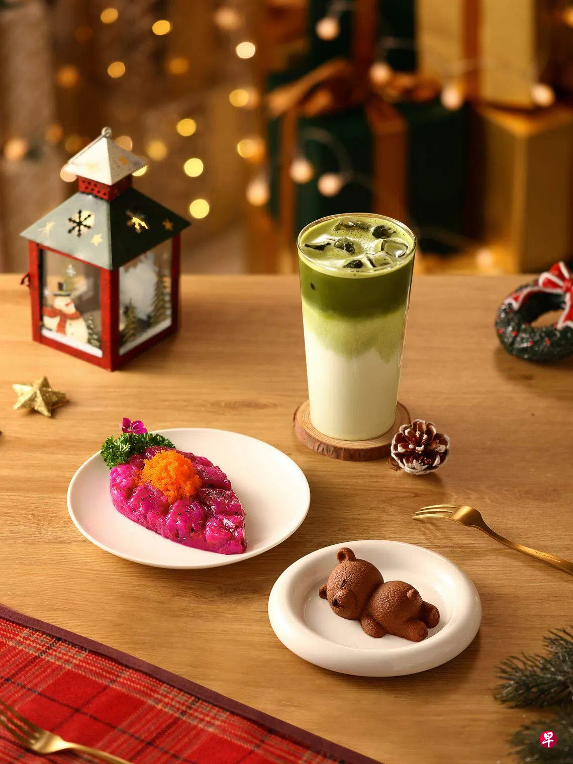 圣诞主题限量周边产品很吸睛,包括发箍、零钱包、雪中送福景观杯、圣诞袜、手提包、杯垫套装、眼罩礼盒和餐具套装等。周边产品可单独购买,下单圣诞套餐也可获得。