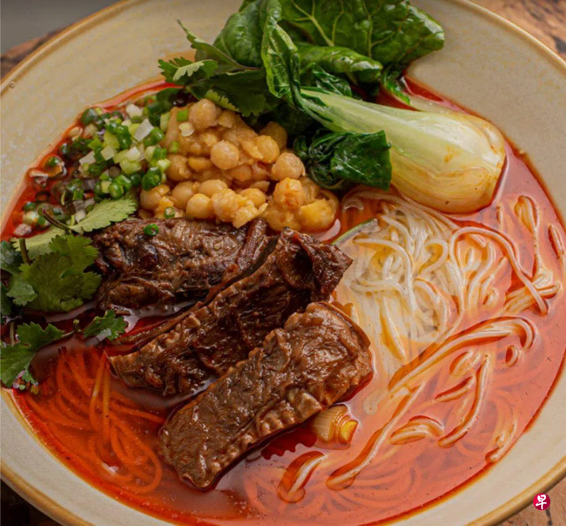 1800年后的今天,餐馆专程到川北乡村和工匠沟通近一年,才争取到这款特色米粉的供应。抱着对“蜀中第一粉”的期待,绵阳米粉口感不错,还没有到惊艳程度,配搭汤底后的整体味道大大提升。红烧牛肉、排骨和肥肠米粉可选择辣、少辣或不辣,藤椒大虾和牛舌,以及泡椒鸡杂则不能调整辣度。一份从$13.50起。