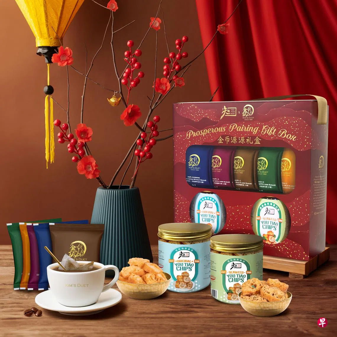 今年品牌和本地传统咖啡制造商金源源(Kim Guan Guan)旗下的金队(Kim’s Duet)合作,推出“金币源源礼盒”($28.80),包括传统和海苔油条金币各一罐,以及五种口味的传统咖啡和茶袋各两小包。礼盒可在两个品牌的官网及指定零售处和电商买到,1月27日前订购折扣10%。