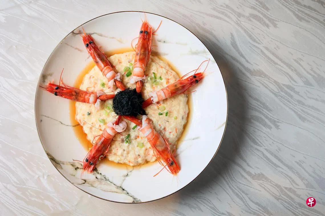 农历新年将近,雅庭假日酒店(Holiday Inn Singapore Atrium)新故乡酒楼行政主厨关耀简(64岁)分享“发财老少平安凤尾蝦”食谱。发菜寓意发财,虾与广东话“哈哈大笑”谐音,传递新一年的祝福。