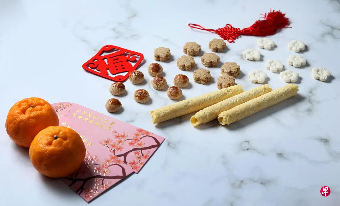 众多过年糕饼中,黄梨挞、鸡蛋卷和万吉糕(Kuih Bangkit)像“三大天王”,不可或缺。