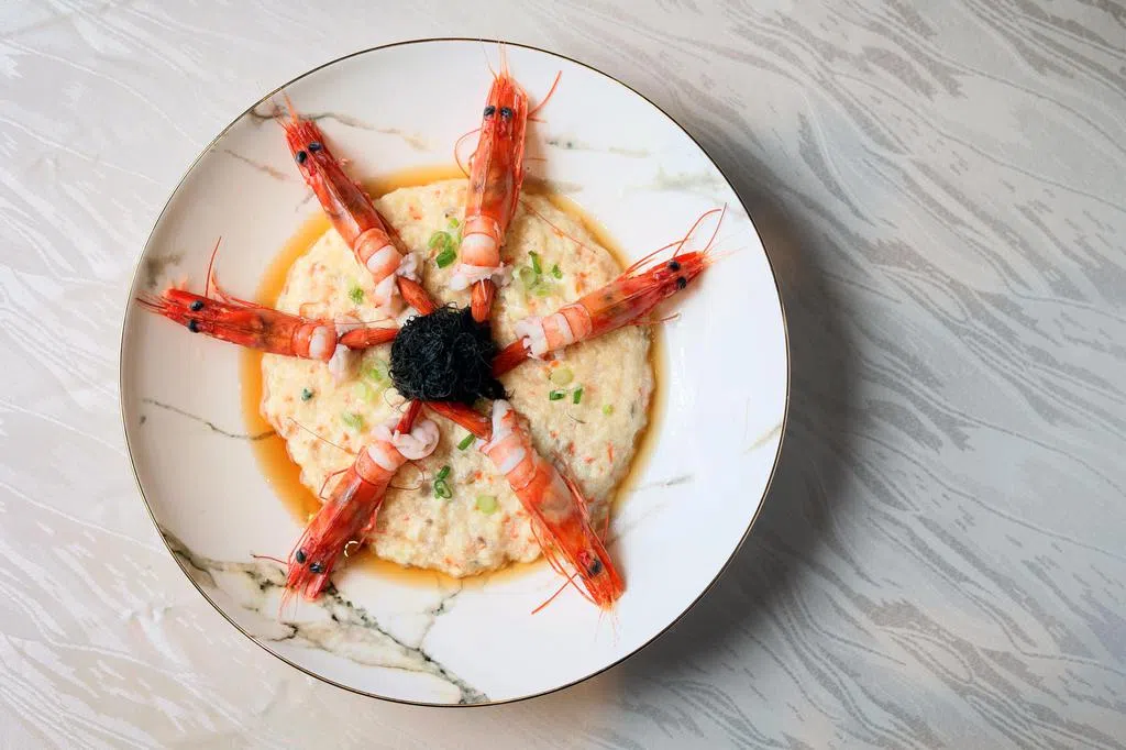 他说,马来菜肴有使用发酵榴梿,新加坡人喜欢吃榴梿,启发他把榴梿融入娘惹菜,用阿根廷红虾和羊角豆,配搭发酵榴梿、娘惹香辣酱、姜黄叶、八角、桂皮等。