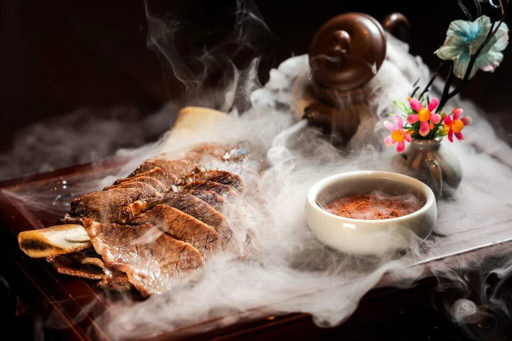 店家的四大招牌菜,首推蒸香碗。这是四川逢年过节必备的家常菜,以蛋皮包裹猪肉馅,卷成长条蒸熟切片,再淋上高汤。青豆烧排骨的色泽美观,排骨切成小块易食用,青豆和酱汁也很搭。另两款招牌菜是泡椒烧凤爪和蒜香炸中翅(三件)。