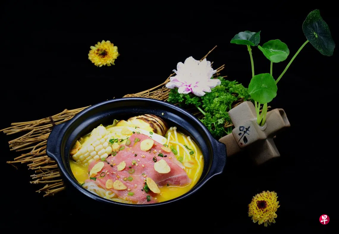 推荐和牛南瓜汤锅($48++),以中餐酸菜鱼为灵感,主料换作和牛薄片,涮一涮即可享用。汤底是美味灵魂,有青辣椒、南瓜、番茄、香菇等提味,香甜微辣,挑逗味蕾,忍不住把汤都喝完。