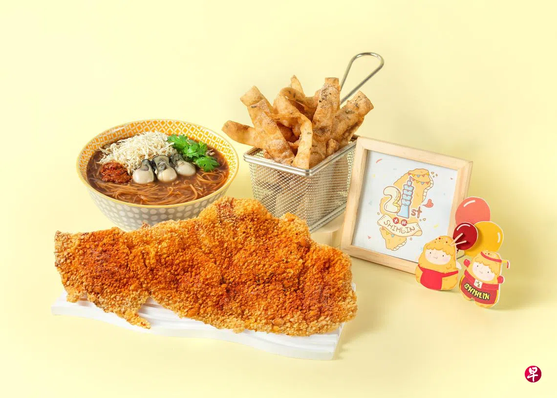 品牌在全岛分店推出周年纪念套餐,即日至4月7日推出的双喜套餐($11,原价$13)包括:一份超大鸡排和一碗蚵仔面线。至于终极三重奏套餐($16.80,原价$18.90),则集合士林台湾小吃的三大畅销菜品,包括:XXL超大鸡排、蚵仔面线和葱油酥(可选择冬炎或海苔口味)。新推出的冬炎葱油酥($4.90,原价$5.90)和海苔葱油酥($4.90,原价$5.90)香酥美味,分别以泰国与日本口味为灵感。