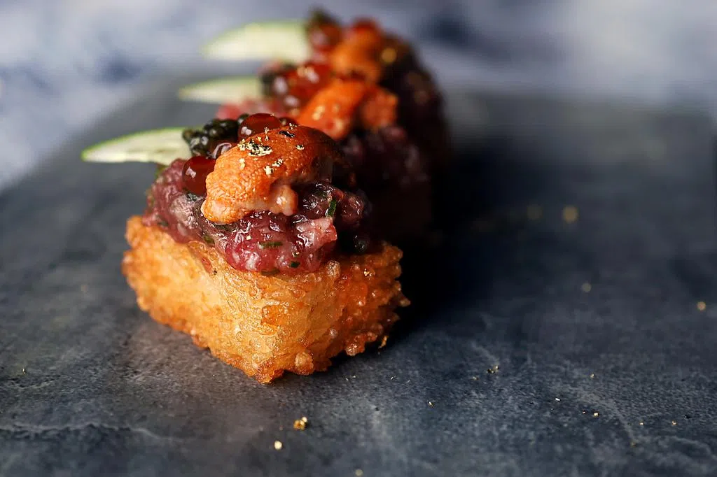 芭菲有三种口味:巧克力香蕉、芒果西米柚子、草莓夹心蛋糕(Vacherin),一杯$17.90。巧克力口味包括布朗尼、脆片、慕丝和浓酱等各种形态的巧克力,甜中有甘苦。芒果西米柚子带水果的酸和香,草莓口味有新鲜草莓和芝士慕丝。