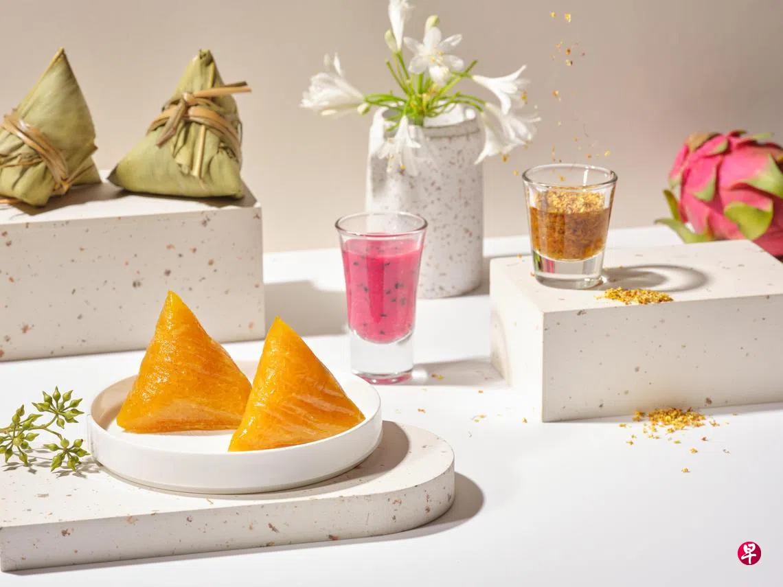 粽子口味千变万化,搭配不同肉类与海鲜烹制出丰盛口味。我爱吃猪脚,香格里拉酒店中餐馆香宫的花胶元蹄粽让人尝到层层惊喜。花胶以上汤腌制,元蹄慢煮至软嫩,去骨后裹入干花胶,蒸煮两小时,将粽子的肉香提升到另一层次。其他肉香出众的粽子,有香宫的风味娘惹粽,鸿桃轩的家传客家黑豚南乳粽,满福苑的云南黑金蒜熏鸭粽,万豪轩的极品XO酱蟹肉粽,乐天集团的XO酱红烧肉粽。