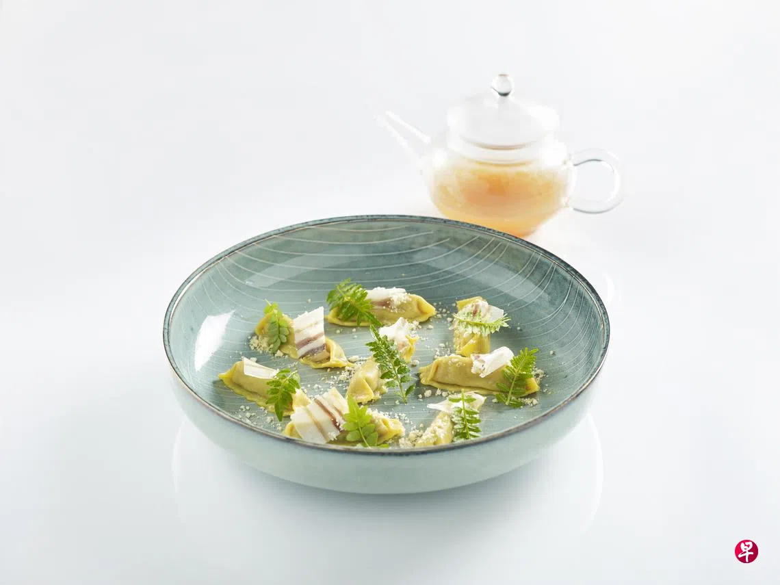 猪颊肉意大利饺令人印象深刻,内馅有风干猪面颊肉、意大利绵羊芝士。小巧精致的意大利饺,风味浓烈,层叠出猪肉和芝士的咸香四溢。阿拉斯加帝皇蟹意大利细宽面搭海葡萄,凸显了海产的鲜味,自制意大利面富有嚼劲。