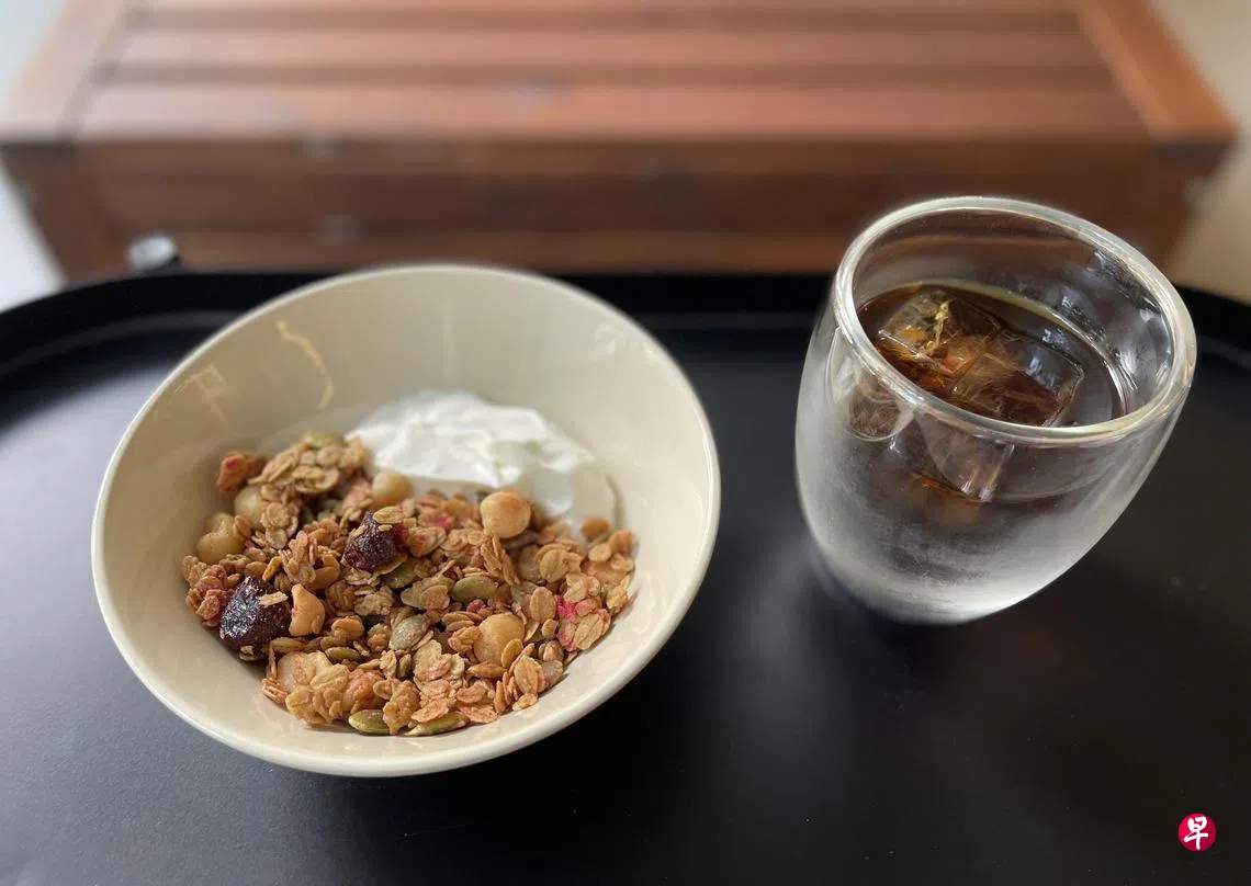 每周除了有比较固定的人气口味,也有限定口味。推荐经典的海盐榛豆黑巧克力,海盐的咸味中和了巧克力的甜味,加上香脆的榛豆便是美味“铁三角”组合。另一款值得一试的是夏威夷果草莓,一大亮点是草莓果干,酸甜中有草莓香气,香甜带嚼劲的口感跟脆口的夏威夷果形成双重滋味。格兰诺拉麦片可以选择搭配希腊酸奶(greek yogurt)或燕麦奶,建议加点一杯冷泡黑咖啡。