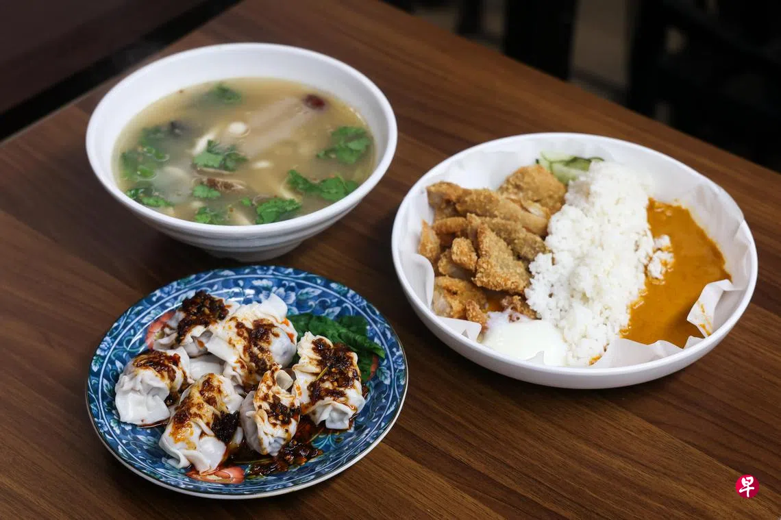 咖喱炸鸡饭、咸蛋鸡、麻婆豆腐、亚参炸鱼等,因想保留发扬这些新加坡煮炒美食,陈慧旖(29岁)今年2月于金隆大厦(Fortune Centre)开店New Station Rice Bar。