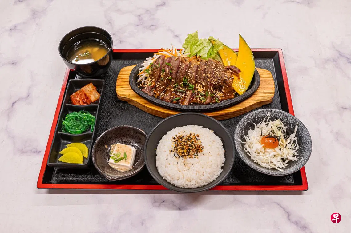 热腾腾的铁板烧美食上桌,让人食指大动,推荐和牛排铁板烧($25.90+),选用的是澳大利亚和牛,风味十足,加上特制酱汁,非常美味。套餐配有小菜和米饭或乌冬面,饱足一餐。