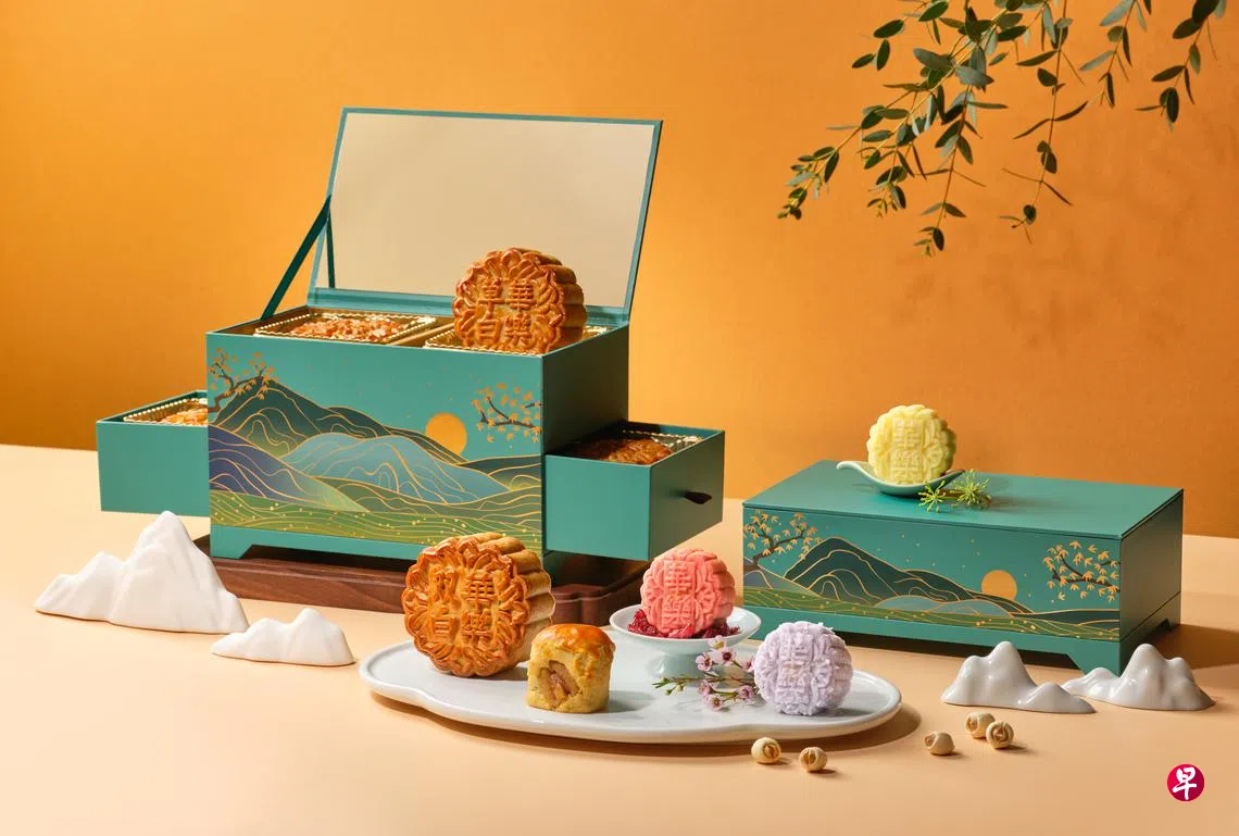 新加坡加尔登酒店的华乐酒家,今年推出两款新品。迷你山楂蔓越莓冰皮月饼内山楂酱的甜和蔓越莓的酸,迷你椰香芋冰皮的椰香和芋泥,都碰撞出对比的火花。两款新品一盒八个$82。另一款迷你猫山王榴梿冰皮,一盒八个$88。