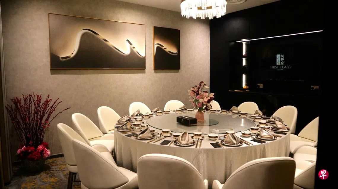餐馆在2023年9月开业,最特别之外是只有厢房,不设大厅,这在新加坡还是第一家。大大小小的厢房共16间,从两人、四至六人、八至10人,到最大的可容纳14人;另有三间厢房可打通,可容纳36人。每一间厢房都设计得豪华舒适,布局大气,让食客感受到至尊至贵。
