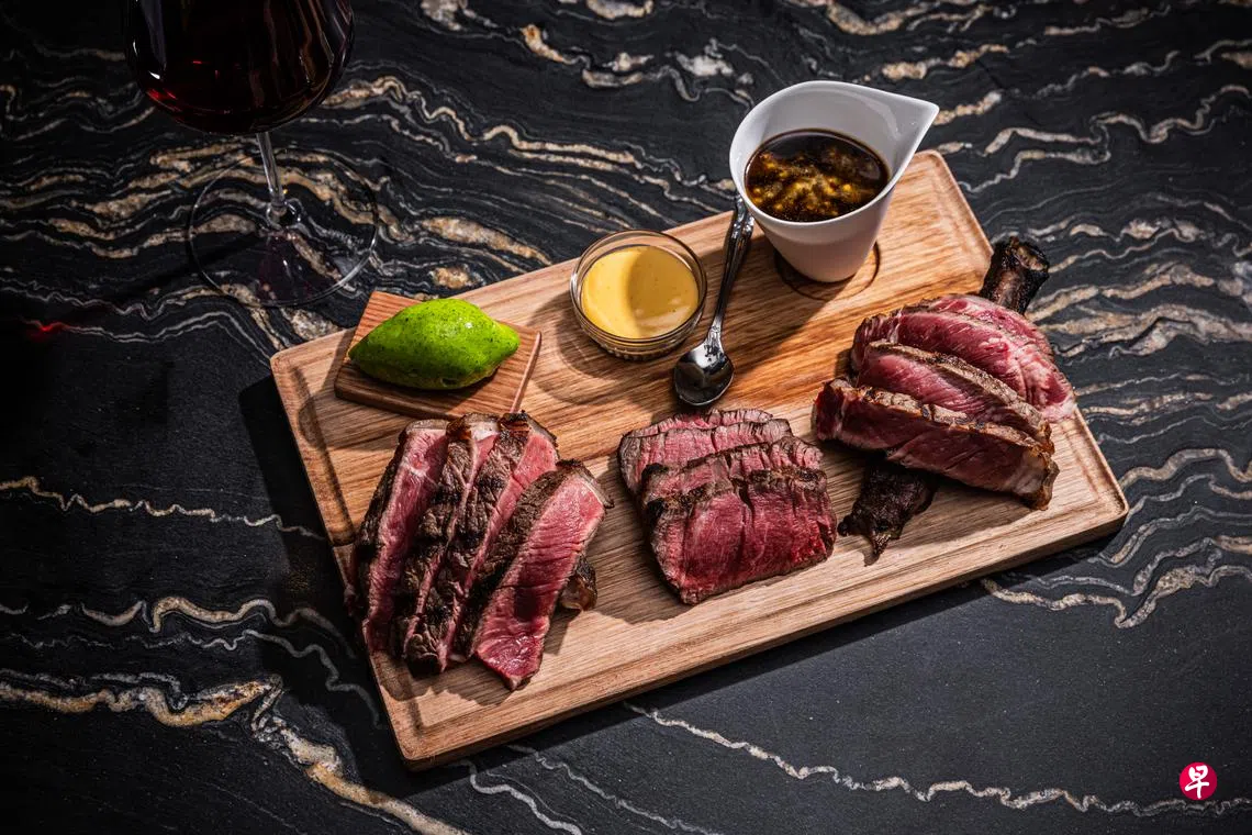 拿手菜包括:帝皇蟹意大利面、鸭油烤马铃薯、牛汉堡、烤鲈鱼、乳酪蛋糕等。喜欢牛排者,餐馆有多种选择如日本但马和牛(Tajima)、澳洲草饲Riverine肋眼等。