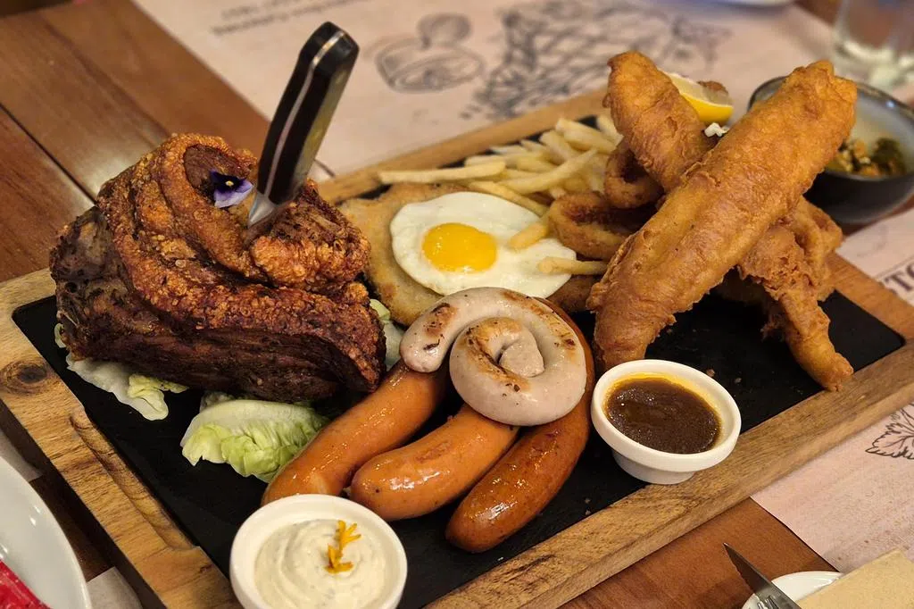 烤牛腩三文治(reuben toastie $20)用两片黑麦面包夹着牛腩肉片、酸菜、瑞士芝士和法式芥末酱(Dijon mustard)。这款三文治咸酸兼有,面包越嚼越香,相当符合本地人口味。另一款辣椒炒蛋三文治($26)是在烤酸种面包抹上自制辣椒酱,铺上炒蛋再加上羊奶芝士和墨西哥辣椒,第一次尝到辣味面包,很新奇,但也有点怪。