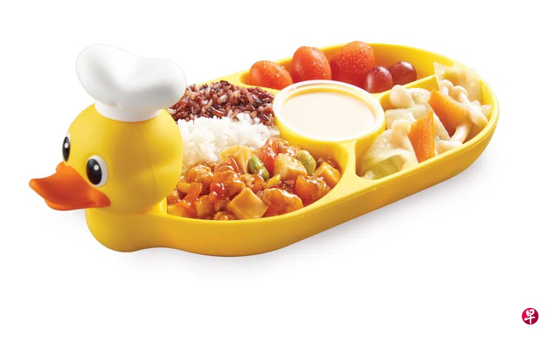 新推出的豆腐肉套餐($9.90),包括白饭和糙米饭、炒豆腐和猪肉碎、鲍汁包菜、原味豆花和水果。菜单上原有的选项QQ虾套餐($9.90)和嫩嫩鱼套餐($9.90)都配有原味豆花和水果,盛放在充满童趣的小二鸭餐具中。
