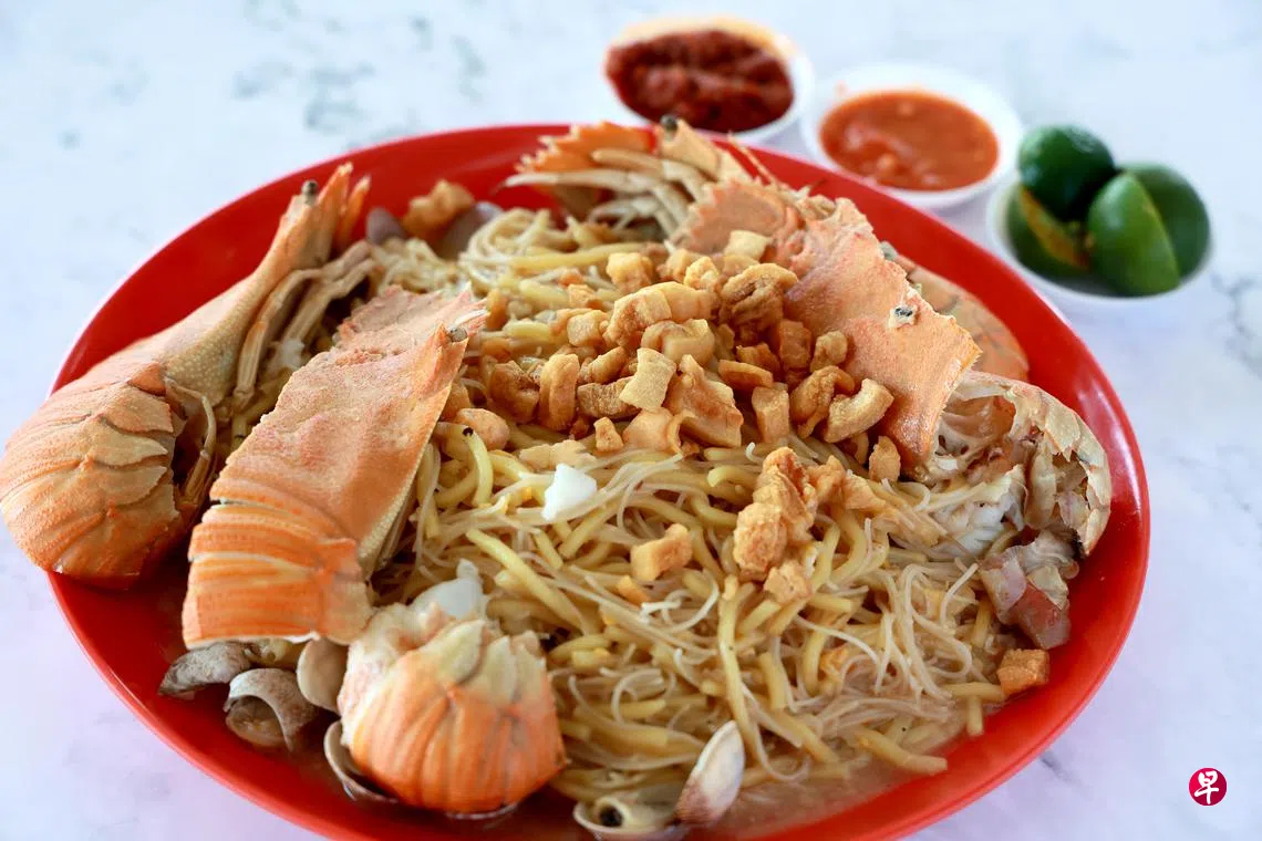 餐牌上列出三款菜式:炒福建面($5起)、啦啦虾婆炒福建面($15)和招牌海鲜炒福建面($25),看起来都相当诱人。档口负责人介绍最后者适合三四人分享,虾婆、大虾等分量也较多。