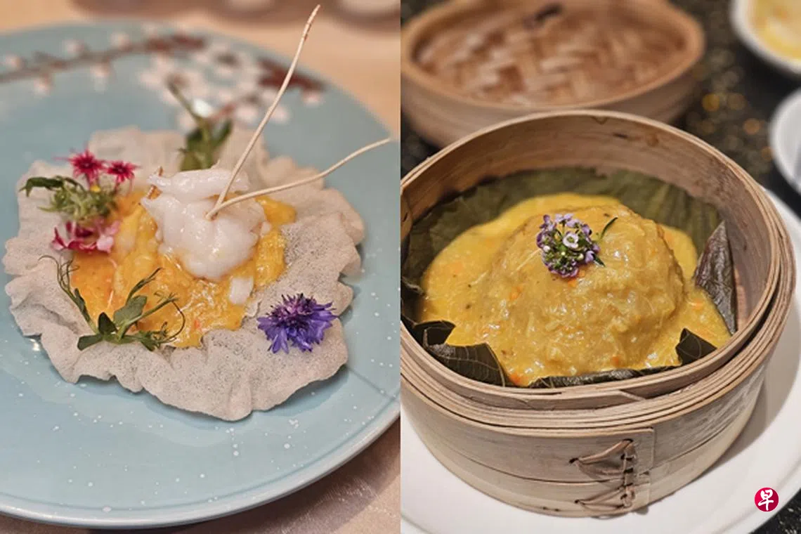 六道菜套餐(每人$268++)让人一次过品尝秋季滋味,包括燕窩蟹粉豆腐羹、蟹粉百花酿鲜冬菇、金盏蟹粉龙虾球、 清蒸大闸蟹、笼仔蒸糯米蟹粉等。套餐包含一瓶375毫升绍兴黄酒(最少两位)。订位电话:62134398。