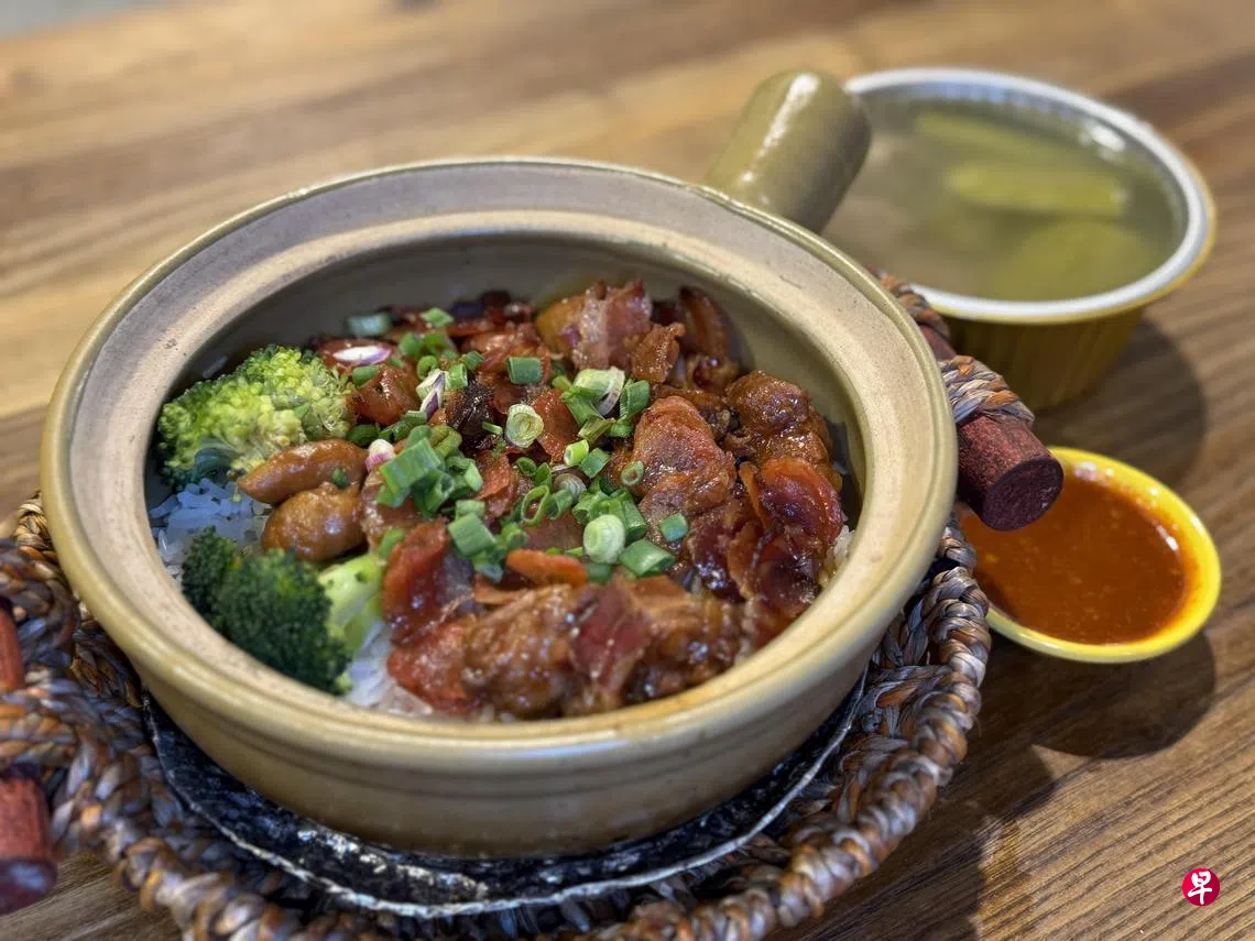 煲师傅主打传承30年的老广煲仔饭,以秘制烹调方法和用料讲究吸引不少食客。点了一份师傅四宝煲仔饭(单点$8.80;套餐$11.80),丰富食材包括:腊肠、腊肉、滑鸡和排骨,是本地煲仔饭中少见的搭配。腊肠和腊肉的浓郁风味为整锅饭增添层次,但也让滑鸡和排骨的味道略显平淡。套餐附有一碗苦瓜炖汤,清爽解腻。